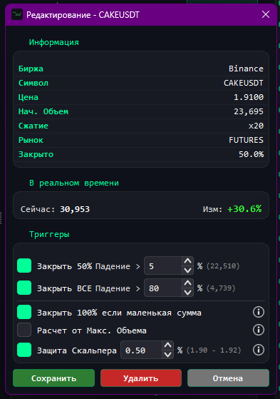 Ложные исчезновения и краткие всплески ликвидности фильтруются до выхода из позиции.