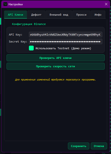 Важные вещи вынесены на передний план: локальное хранение ключей, стабильный WebSocket-клиент, прокси, синхронизация времени и визуально понятный статус системы.